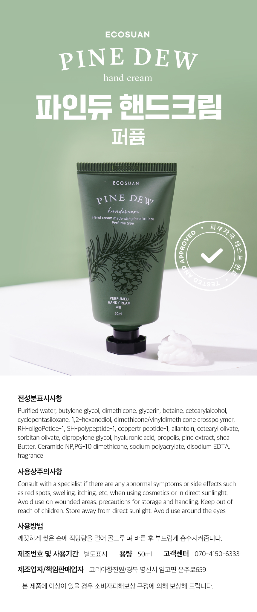 | 품명 및 모델명 | 파인듀 퍼퓸핸드크림 (50ml) | 상품번호 | 002 |