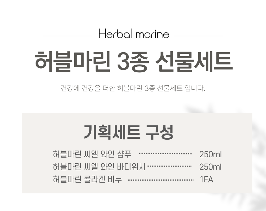 | 품명 및 모델명 | 허블마린 3종 선물세트 | 상품번호 | 006 |